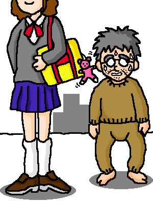 ふと足を止めた瞬間…… 目の前に「モモ」のアクセサリを 鞄に付けた女子高生が ワシを誘惑するかのように 立っていたのさ 「へい、彼女 お前もポスペが好きなのかい? ワシもポスペが好きなのさ ホームページもあるんだぜ」 って、心の中で呟いたんだ 「へい、どうだい? ワシと一緒に ポスペの話しでもしながら 楽しい時間を過ごさないかい?」 って、何度も何度も呟いたけど 所詮ワシのフェロモンは おとなの香り 女子高生には危険な香り 「あばよ、幸せになれよ」 ワシはそう呟きながら 彼女の背中を静かに見送ったのさ |